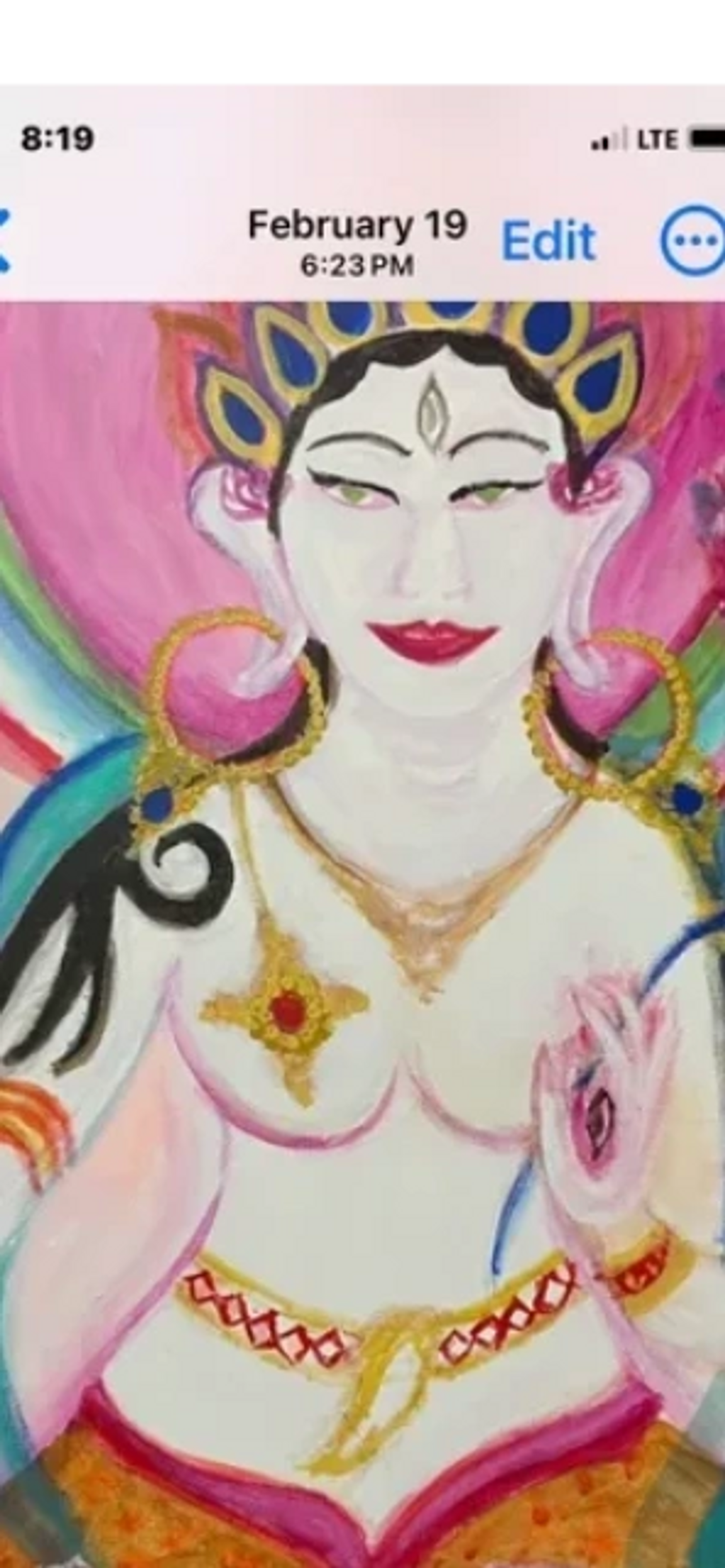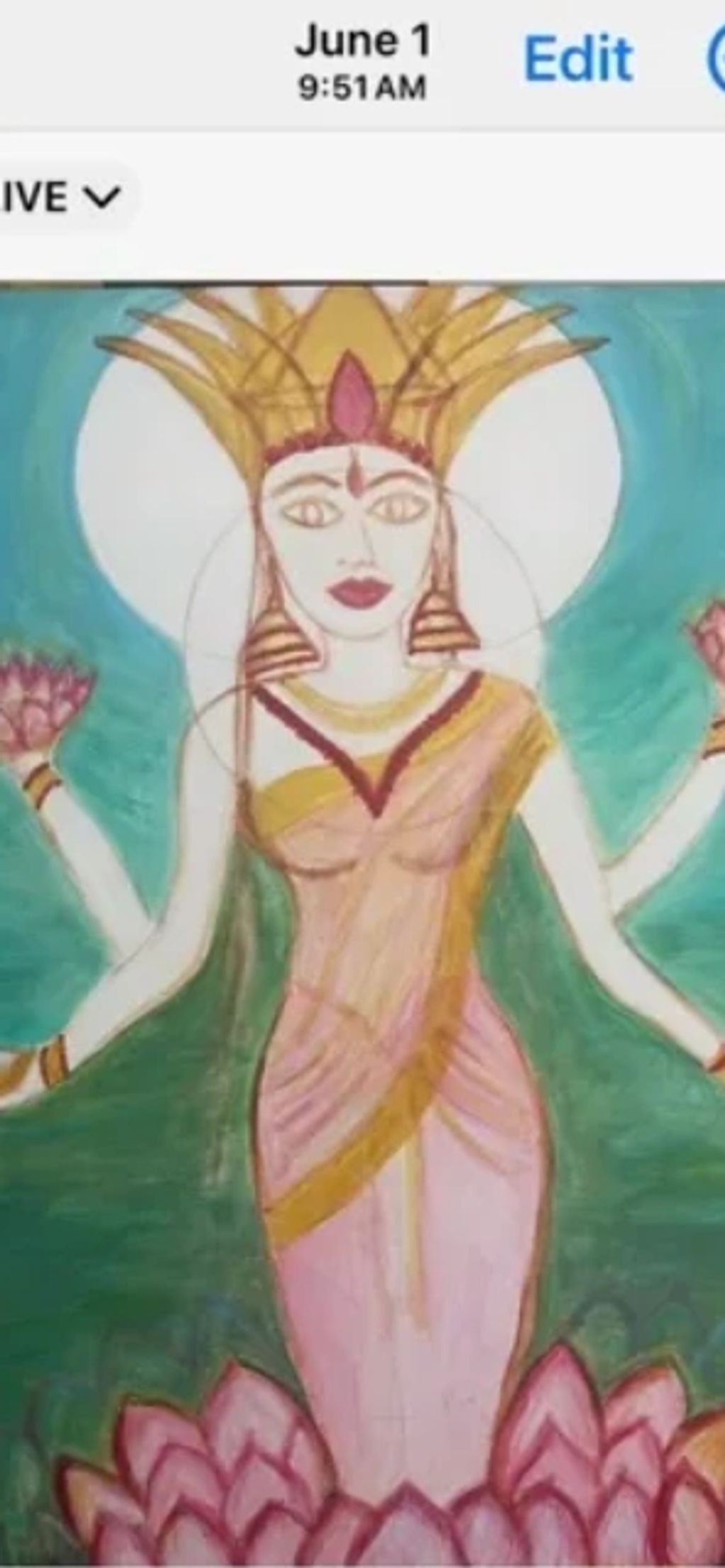 I painted this in 2004 from a photo of a rock formation. I saw the being in the rock. So much fun!